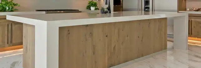 A flat (eased) edge features a straight 90-degree profile with slightly rounded corners for a softened look. Its clean, minimalist style suits modern designs, maximizes usable surface area, and is easy to maintain. The softened corners also help reduce chipping and improve comfort.