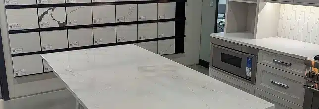 Step inside to explore elegant granite, quartz, and marble surfaces, with over 100 stones ready for immediate selection and fast fabrication.